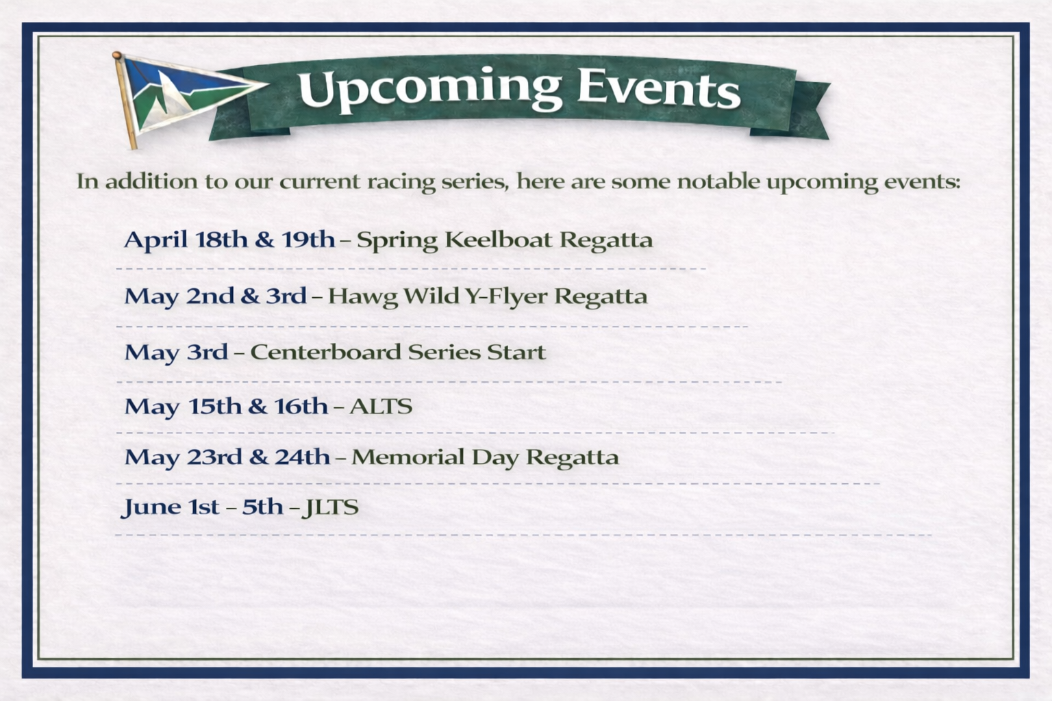 It’s always a fun weekend with racing and the regatta dinner. Grab your crew and register now to be part of it.